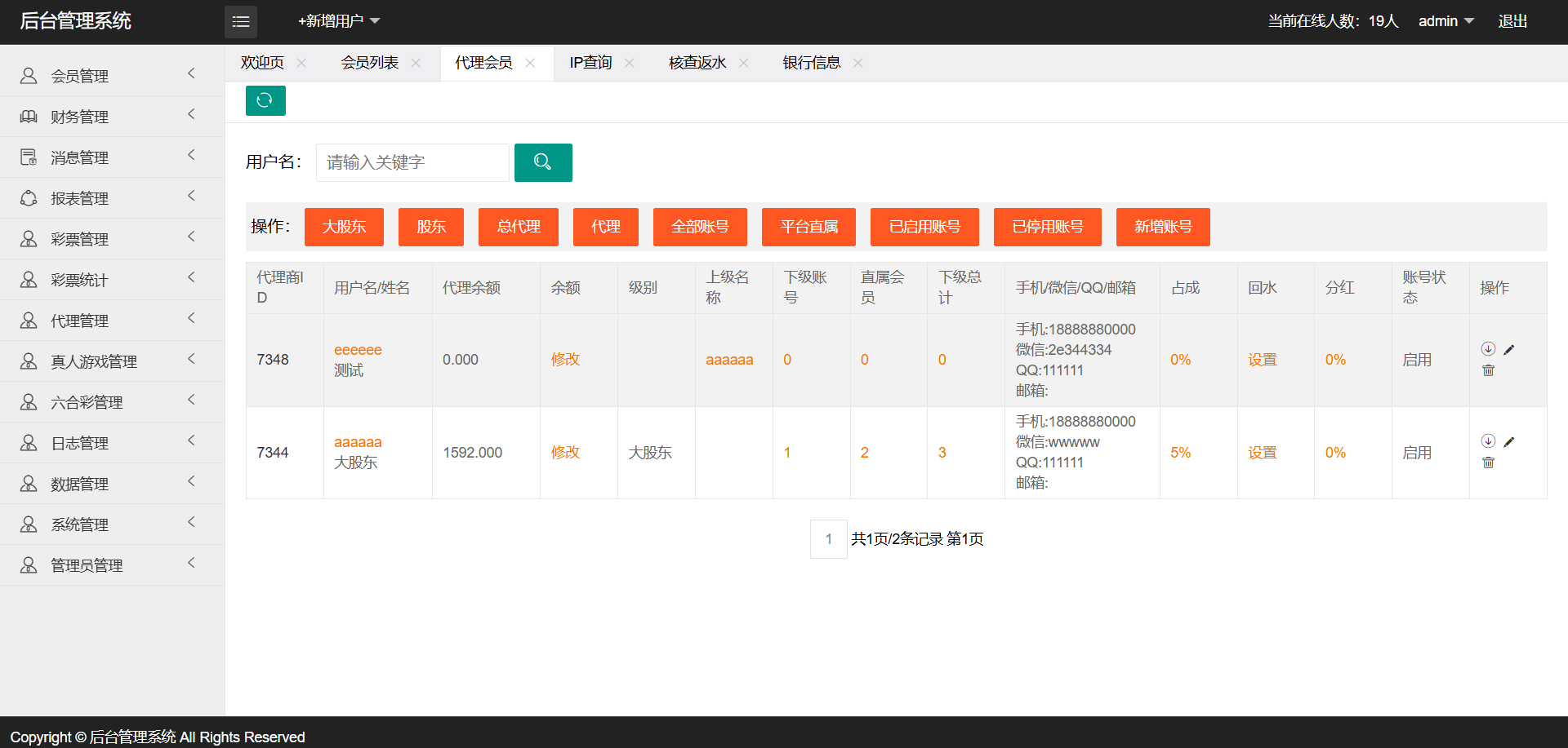 后台管理: